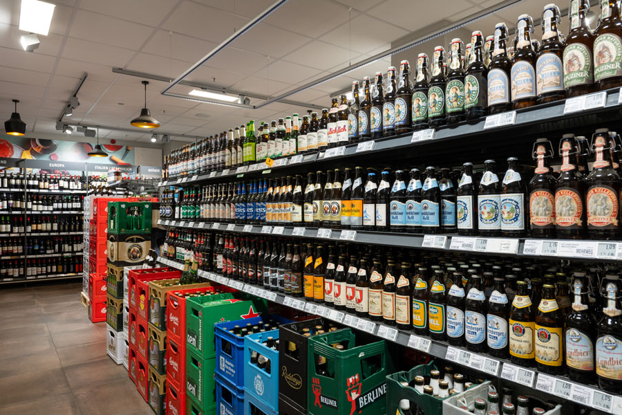 Auch unsere Auswahl an Getränken überzeugt. Ob du das Bier zum Feierabend suchst, einen leckeren Wein zum Essen oder Spirituosen für eine Feier – bei uns findest du viele Hersteller und Sorten von regional bis international. Auch für den Alltag steht einiges für dich bereit. Ob Wasser, erfrischende Schorlen, fruchtige Säfte oder Softdrinks in vielen Geschmacksrichtungen. Natürlich erhältst du viele der Getränke auch im Kasten für den Vorrat und auch kühle Erfrischungen stehen für dich bereit!