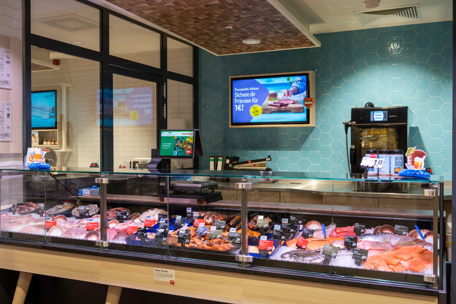 In der unteren Etage findest du unsere Frischetheke. Das Team steht für deine Fragen und Wünsche bereit. Bei uns findest du leckere Fleisch, Wurst und Fisch in Bedienung.
