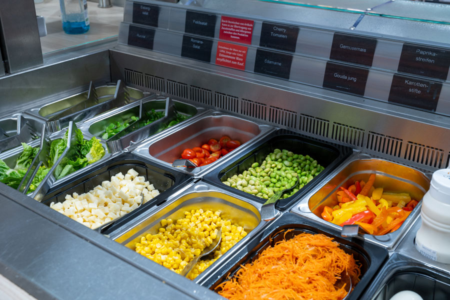 Das Obst und Gemüse findest du in der oberen Etage. Natürlich jeden Tag frisch für dich und mit einer großen Vielfalt an regionalen Erzeugern. Selbstverständlich findest du hier auch saisonale Spezialitäten und eine Auswahl an Bio– und Demeterprodukten. Außerdem haben wir für dich viele verschiedene Kräuter in der Abteilung – frisch und würzig. Auch exotische Vitaminbomben und Schalenfrüchte findest du bei uns. An unserer Salatbar kannst du dir leckere Salate ganz nach deinem Geschmack selbst zusammenstellen.